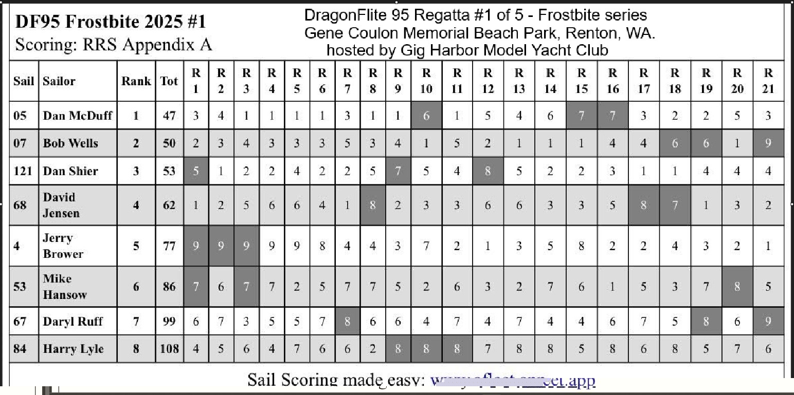 Upcoming 2025 IOM and DF95 Events:<< Long Lake IOM Every Friday (or Sat weather dependent) Loudon Park, Nanaimo, BC. 9:!5-2PM. See FB BC pg. Stan.>><< Anacortes RCS IOM 11AM Sunday and Wednesday LowKey . *Best with plus tide* Seafarers Park. Julian L>> << Steveston RC, IOM, 11AM-1PM Second and 4th Sunday. Results Imperial Landing, Richmond, BC. Allan G. Olympia Model Sailors 1st and 3th Sunday DF95 10AM start Swantown or Port Plaza. (Wind direction). See FB pg. >> ------------------------------Coming-up in the next 30 days.10/28 10-noon Lake Whatcom DF95 casual sailing Sudden Valley Marina, Bellingham, WA. no scores. 10/29 Anacortes RCS IOM Wednesday LowKey 11AM-2PM. GbMajor. Seafarers Park, tide good Julian L. 10/31 Long Lake IOM Friday Loudon Park, Nanaimo, BC. 9:15-2PM. See FB BC pg. Stan S. 11/02 Anacortes RCS Anacortes RCS IOM Sunday 11AM-3PM Seafarers Park, tide good Julian L. 11/02 Olympia Model Sailors DF95 10AM DF95 #93 Swantown or Port Plaza. (Wind direction). See FB pg.11/05 Anacortes RCS IOM Wednesday LowKey 11AM-2PM. GbMajor. Seafarers Park, tide good Julian L. 11/07 Long Lake IOM Friday Loudon Park, Nanaimo, BC. 9:15-2PM. See FB BC pg. Stan S. 11/08 10AM-2PMGHMYC DF95 Fall Racing series Saturday Regatta #2. Coulon Park, Renton, WA. Daryl R. See FB pg. 11/09 Anacortes RCS Anacortes RCS IOM Sunday 11AM-3PM Seafarers Park, tide good Julian L. 11/09 11AM IOM Steveston RC Fall Final Imperial Landing, Richmond, BC. Allan G .(604)721-550411/12 Anacortes RCS IOM Wednesday LowKey 11AM-2PM. GbMajor. Seafarers Park, tide good Julian L. 11/14 Long Lake IOM Friday Loudon Park, Nanaimo, BC. 9:15-2PM. See FB BC pg. Stan S. 11/15 10AM-2PM GHMYC DF95 Fall Racing series Saturday Regatta #3. Coulon Park, Renton, WA. Daryl R. See FB pg. What's NEW! Recent site Updates10/26 Posted GHMYC DF95 Frostbite #1 Results and Wells Report from Coulon Park. See 2025 10/25. 10/18 Added Wells Report for IOM, AMYA R6 Championship. Coulon Park, Renton. See 2025 09/27. 10/16 Posted 2025 WCRS Coastal Cup Series season ReCap by Steve Kinsey. See 2025 10/12. 10/14 Posted Seattle MYC IOM Regatta #8 scores and season pts. See 2025 10/11. 10/14 posted WCRS Coastal Cup #8 scores, photos and season pts. See 2025 10/12. 10/10 Added DF95 AMYA US Nationals Sailing Instructions Measurement Info. See 2025 10/16. 10/06 Posted Anacortes RCS IOM Sunday Results from Cap Sante Lagoon. See 2025 10/04. 10/04 Posted GHMYC IOM Saturday Regatta #8 Results from Surprise Lake. See 2025 10/04. 10/03 Posted Long Lake IOM Friday Results from Loudon Park, Nanaimo. See 2025 10/03. 10/01 Added AMYA R6 Championship Video link from Coulon Park. See 2025 09/27. 09/29 Posted Anacortes RCS IOM Sunday Report from Seafarers Park. See 2025 09/28. 09/28 Posted IOM, AMYA R6 Championship Results from Coulon Park. See 2025 09/26. 09/28 Posted Long Lake IOM Friday Results from Nanaimo. See 2025 09/26. 09/23 Posted IOM WCRS Coastal Cup Royal Vic Fanale SI and OLR. See 2025 10/12. 09/22 Included Don Martin Report from Saltspring IS for Canadian Nationals. See 2025 09/11. 09/21 Posted Anacortes RCS IOM Sunday Results from Seafarers Park. See 2025 09/21. 09/21 Posted Olympia Model Sailors DF95 #90 Report from Swantown. See 2025 09/21. 09/20 Posted Gig Harbor Cup #7 Results from Surprise Lake. See 2025 09/20. 09/20 Posted Long Lake IOM Results and Summer Series from Loudon Park. See 2025 09/19. 09/16 Posted Caanadian IOM Nationals Results and Report. See 2025 09/12. 09/08 Posted Olympia Model Sailors DF95 #89 Report from Swantown Marina. See 2025 09/07. 09/06 Posted Seattle MYC IOM Saturday Regatta #7 scores from Coulon Park. See 2025 09/06. 09/05 Posted Long Lake IOM Friday Results from Loudon Park, Nanaimo. See 2025 09/05. 09/02 Added Anacortes RCS Sunday scores and Wells' DF95 wrap-up. See 2025 Header and 08/31. 09/01 Posted scores from Long Lake, Coulon and Dan's Report from Olympia. See 2025 08/29. 08/25 Added Don Martin Report from 8/16 Squamish Event. See 2025 08/16. 08/24 Posted Bob Wells report for Dan's DF95 Travelers Trophy at Coulon Park. See 2025 08/23. 08/23 Posted Dan's DF95 Travelers Trophy #3 Results from Coulon Park. See 2025 08/23. 08/23 Posted Long Lake Sailors Summer Wk #8 Results From Loudon Park. See 2025 08/22. 08/20 Julian L reports Anacortes RCS 8/24 Sunday IOM Start delayed until 1PM. See 2025 08/24. 08/18 Updated Anacortes SOM to include Vic Childs as August 2025 Sailor of the Month. 08/18 Anacortes LowKey Wednesday Start delayed until NOON-3PM for Water. See 2025 08/20. 08/18 Posted Anacortes RCS Sunday Results from Seafarers Park. See 2025 08/17. 08/17 Posted Olympia Model Sailors DF95 #88 Swantown Results. See 2025 08/17. 08/16 Posted Coastal Cup #6 Results from MamQuam Channel Squamish, BC. See 2025 08/16. 08/14 Added Bob Wells reports for GH#5 with SC#5 and GH#6 with SC#6. See 2025 07/12 and 08/02. 08/13 Long Lake IOM Friday 08/15 at Loudon Park, Nanaimo. Canceled. See FB BC pg. Stan S. 08/09 Posted Seattle MYC #6 Results from Coulon Park. See 2025 08/09. 08/05 Added Anacortes RC Sailors scores from July 20 and August 3. See 2025 07/30 and 08/03. 08/05 Posted OnLine Registration and Sailing Instructions for Squamish Coastal Cup #6. See 2025 08/16. 08/03 Posts results from Long Lake, Surprise Lk and Olympia. See 2025 08/01 07/28 Added Coastal Cup #5 Report from Long Lake. See 2025 07/19 07/26 Posted GHMYC DF95 Saturday Regatta #6 Results from Coulon Park. See 2025 07/26. 07/21 Posted Olympia Model Sailors Results from Swantown. See 2025 07/20. 07/20 Added Long Lake CC5 Slide Show from Nanaimo. See 2025 07/19. 07/19 Posted Saturday IOM scores from Long Lake CC5 and Coulon Park SC5. See 2025 07/19. 07/15 Posted Steveston RC IOM Summer #1 Results fron Imperial Landing. See 2025 07/13. 07/13 Added Results for GHMYC IOM #5 from Surprise Lake. See 2025 07/13. 07/08 Posted Sunday scores from Anacortes and Olympia. See 2025 07/06. 07/04 Posted CCS#5 NOR and OLR for Long Lake 1-day event. See 2025 07/19. 06/30 Added Dan's DF95 T-Trophy